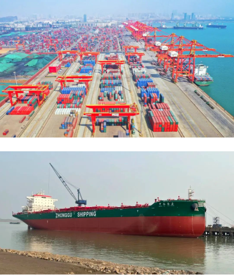 在公開照片中,與習(xí)近平總書記“同框”的,正是中國船舶集團(tuán)旗下武漢船機(jī)、七一六所參與建設(shè)的日照港順岸開放式全自動(dòng)化集裝箱碼頭,以及上船院設(shè)計(jì)、汾西重工提供關(guān)鍵配套的4600箱集裝箱船“中谷南昌”號(hào)。