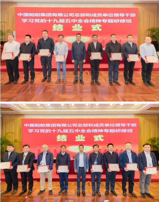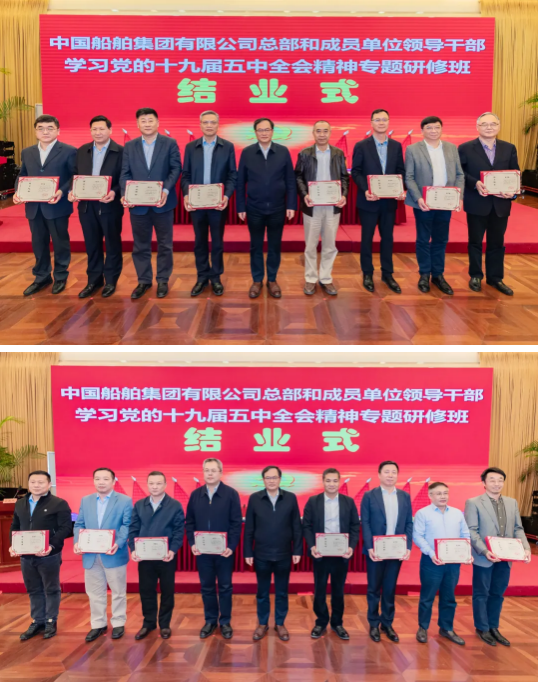 4月23日,中國船舶集團(tuán)有限公司總部和成員單位領(lǐng)導(dǎo)干部學(xué)習(xí)黨的十九屆五中全會精神和黨史學(xué)習(xí)教育專題研修班圓滿結(jié)業(yè)。培訓(xùn)期間,中國船舶集團(tuán)黨組書記、董事長雷凡培以《深入貫徹落實(shí)習(xí)近平總書記重要指示批示精神 努力加快建設(shè)世界一流船舶集團(tuán)》為題給全體學(xué)員們講授了第一課,中國船舶集團(tuán)黨組副書記、總經(jīng)理?xiàng)罱鸪?,黨組成員、副總經(jīng)理孫偉、盛紀(jì)綱以及相關(guān)部門負(fù)責(zé)人先后出席各期結(jié)業(yè)式并聽取了學(xué)員們的學(xué)習(xí)匯報。